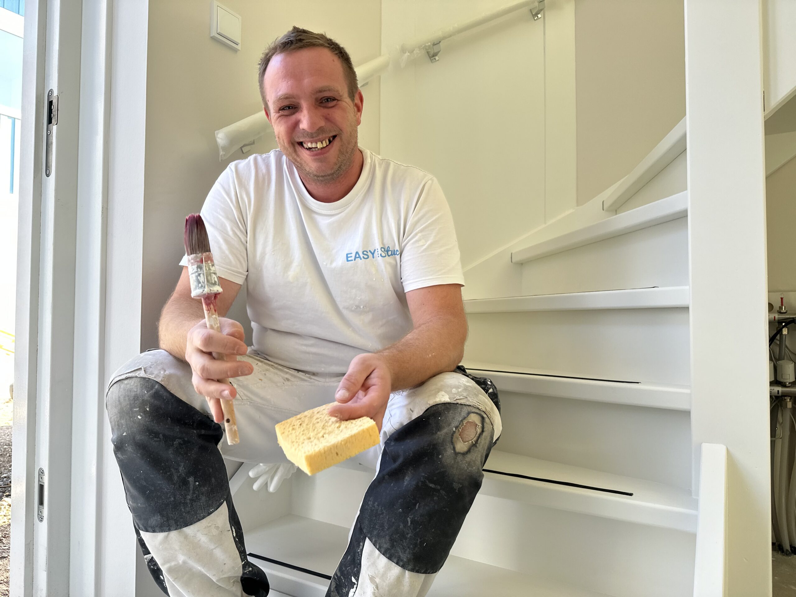 Vanuit Vereniging Eigen Huis wordt standaard aangegeven dat je een jaar of twee moet wachten met het afwerken van de trap. Dit heeft echter veel nadelen. Als je ervoor kiest om het in bewoonde toestand te laten doen, dan ligt de prijs hoger, heb je het hele huis vol met stof van het schuren en een aantal dagen mensen over de vloer. Als je het werk voor bewoning laat doen dan kan er krimp ontstaan. Maar omdat we water gedragen verf gebruiken is schilderwerk nog makkelijk bij te werken, water gedragen verf verkleurt namelijk niet. Ook kan het pvc makkelijk hersteld worden bij krimp. Een terugkomochtend / middag bieden we aan tegen een aantrekkelijk tarief. Op die manier kunt u gelijk bij bewoning in een mooi afgewerkt huis wonen en bent u ook nog goedkoper uit.